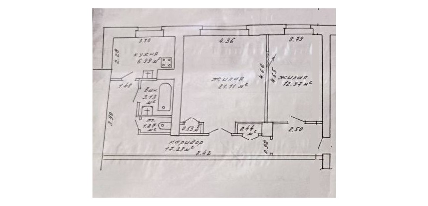 Общая площадь - 63,72 м², 2/5 этаж, кирпич