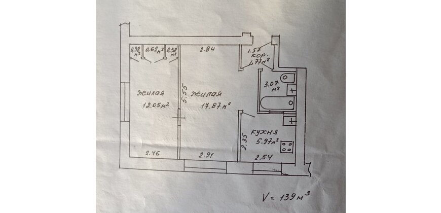 Общая площадь квартиры 42,1 кв.м по СНБ 42,1 кв. м( жилая площадь 29,92 кв.м., кухня 5,97 кв. м.) высота потолка 2,50, входная дверь металлическая.